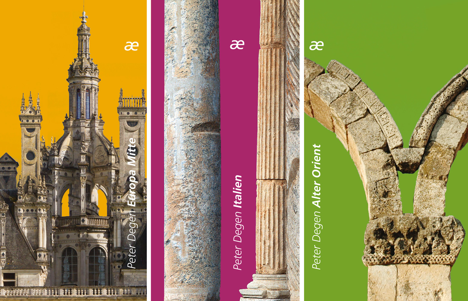 Die Serie 1 der Reihe ‹Begegnungen›, enthaltend die Bände ‹Europa Mitte›, ‹Italien› und ‹Alter Orient›, kann als Trilogie im Schuber zu einem Sonderpreis erworben werden.
